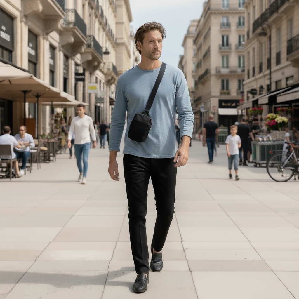 - Volume : 1,6 L — idéal pour smartphone, portefeuille, clés, lunettes, powerbank, passeport